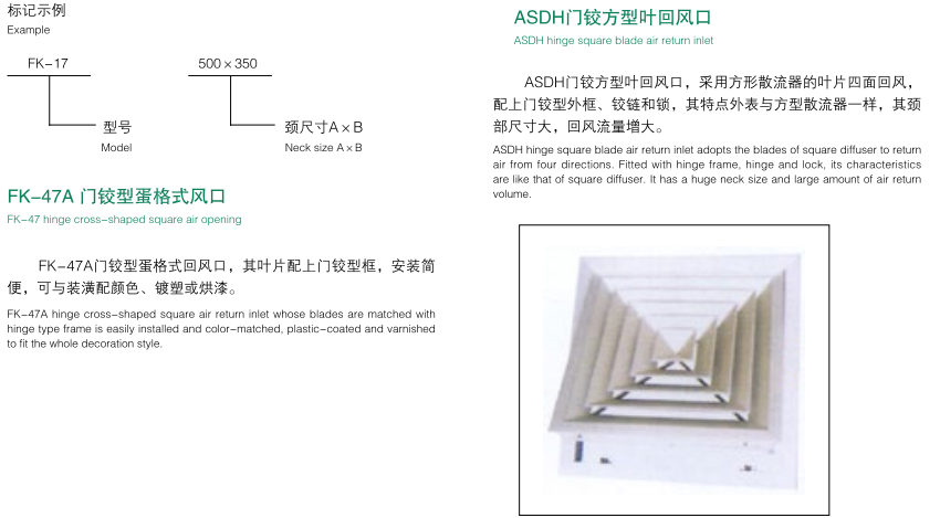 回风口有条形活芯回风口、防水百叶风口、蛋格式风口和门铰方形叶回风口等,根据不同场景需要使用不同回风口。